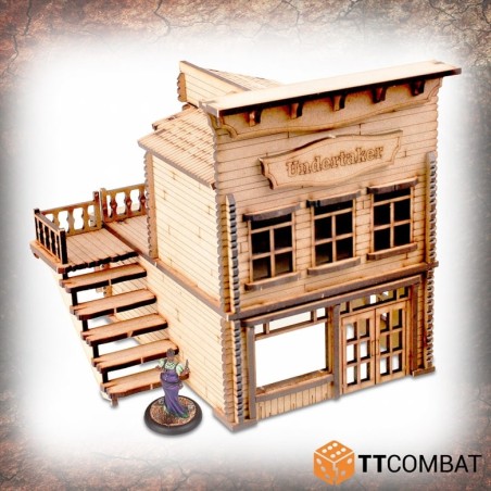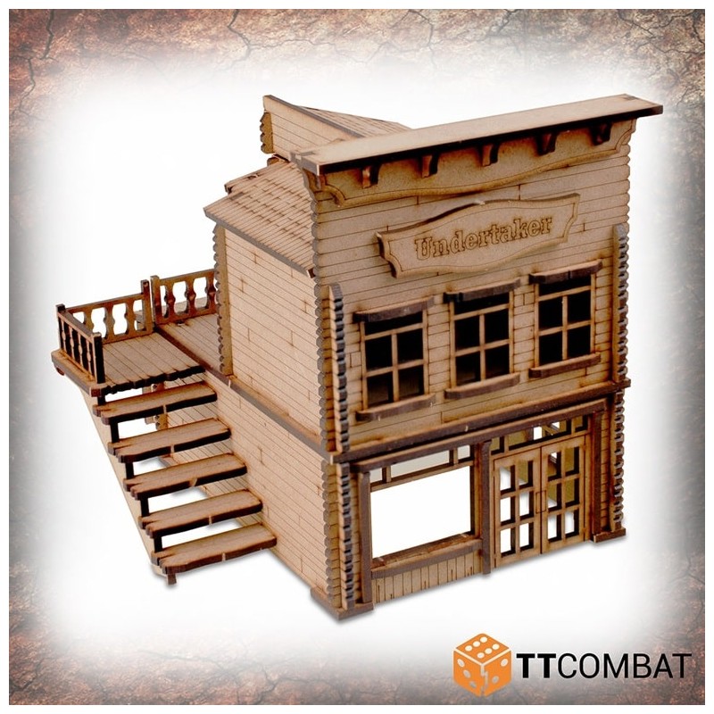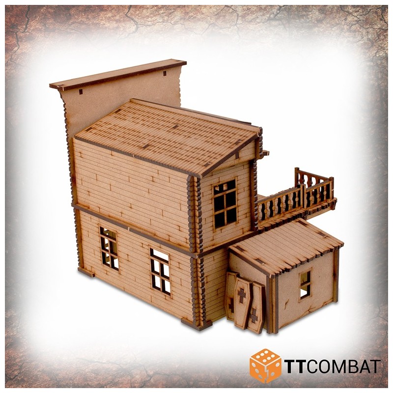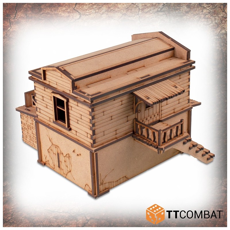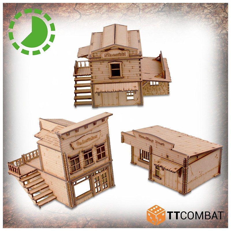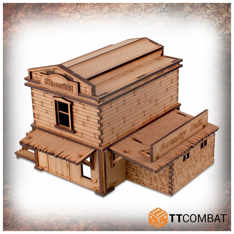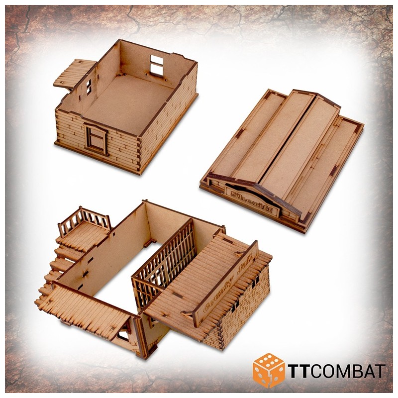 Le Pitchstone Municipal est fabriqué en MDF de 3 mm. C’est un excellent kit de décor à utiliser dans les jeux d’escarmouche sur le thème du Far West, et il fonctionnera parfaitement avec les jeux et les figurines de 28 à 32 mm.