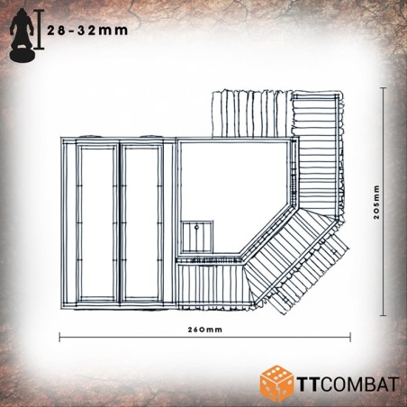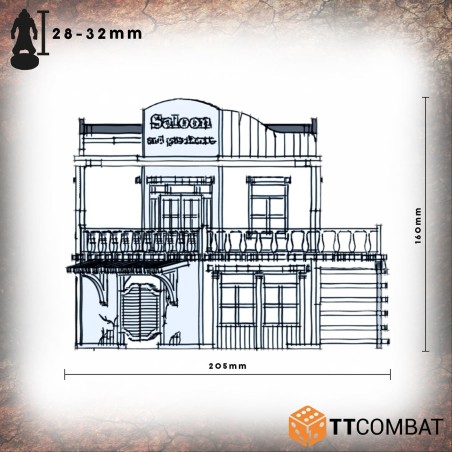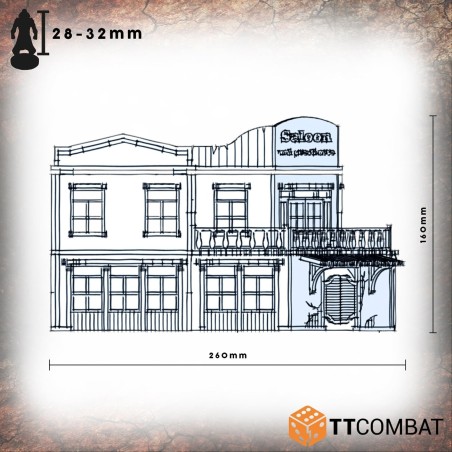 Le Pitchstone Saloon est fabriqué en MDF de 3 mm. C’est un excellent kit de décor à utiliser dans les jeux d’escarmouche du Far West, et il fonctionnera parfaitement avec les jeux et les figurines de 28 à 32 mm.