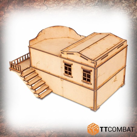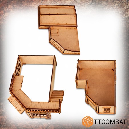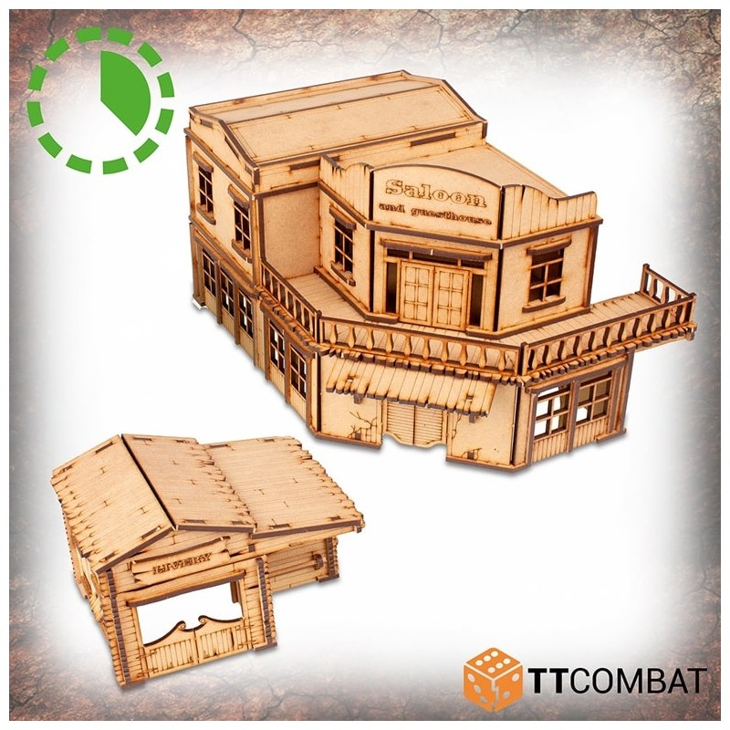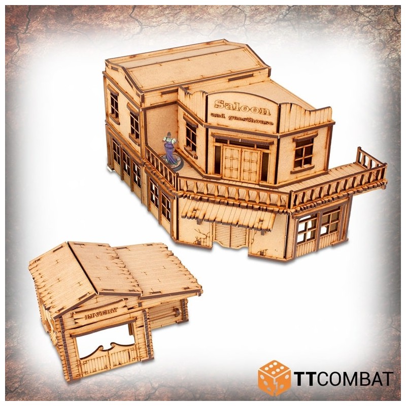 Le Pitchstone Saloon se compose de deux bâtiments. Tous deux offrent de nombreuses fonctionnalités ludiques, telles que des toits amovibles permettant des escarmouches à l’intérieur, des toits légèrement inclinés permettant aux figurines de se percher en toute sécurité sans craindre de glisser, tout en utilisant la surface comme zone de jeu.