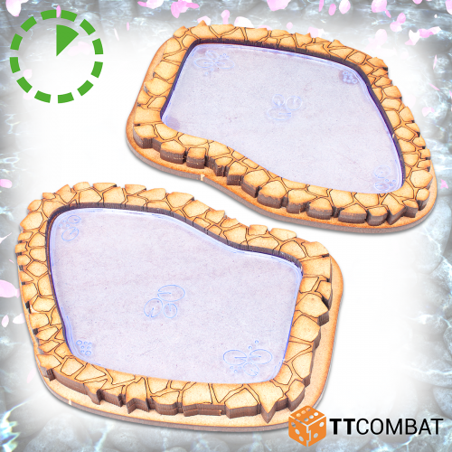 Les bassins sont fabriqués à partir de MDF de 3 mm et d’acrylique bleu de 3 mm. C’est un excellent kit de décors à utiliser dans les jeux de guerre fantastiques ou modernes, et fonctionnera parfaitement avec des figurines de 28-32 mm.
