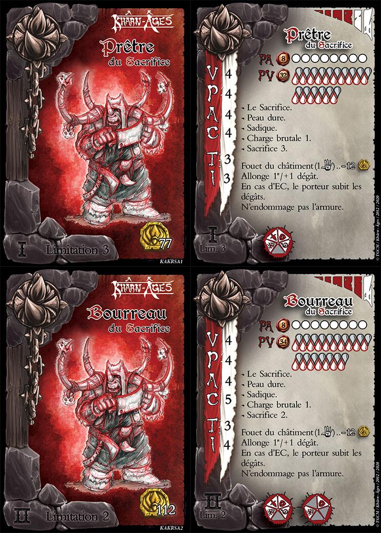 Les Prêtres Niveau 1 et les Bourreaux Niveau 2 du sacrifice sont l’âme de l’armée Khérops. Ils se mutilent pour galvaniser leurs troupes, n’hésitant pas à puiser dans le sang, les forces et la vitesse qui leur permettent de dominer leurs ennemis.