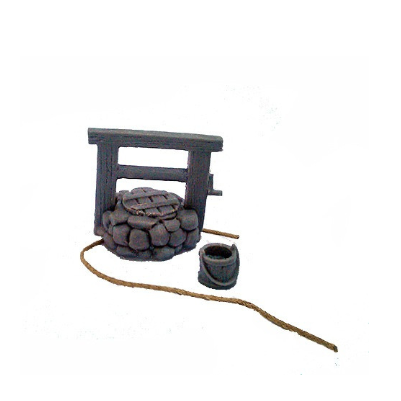 L’ensemble en trois parties comprend la base du puits, la tête du puits et le seau. Vous aurez besoin de fil pour la corde.