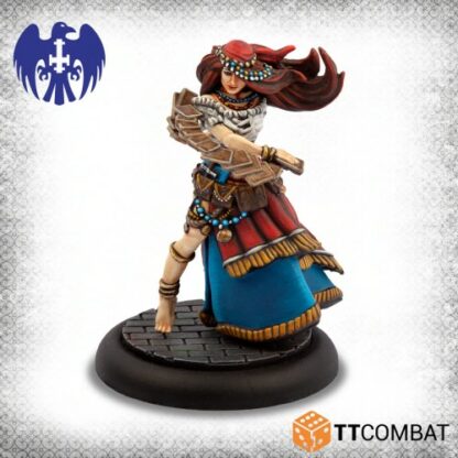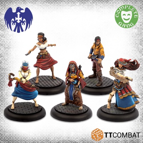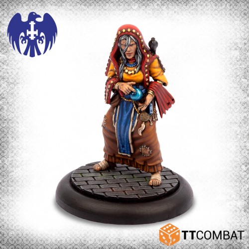 Les Romani sont tout ce que les Strigoi ne sont pas, et cet ensemble ne fait pas exception ! Avec cinq mages, c’est une boîte variée. La Blood Crone dirige ce gang et, bien que lente, elle utilise une multitude de sorts magiques. Deux Roms l’accompagnent