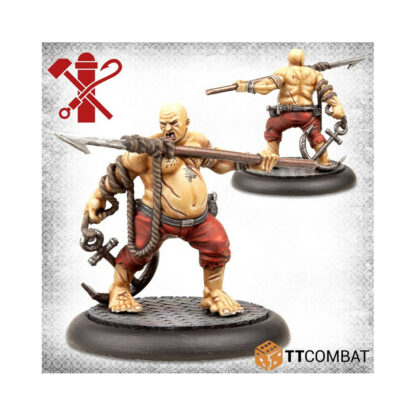 L’énorme baleinier est un expert non seulement pour attraper les monstres aquatiques, mais aussi pour traîner ses malheureuses victimes avec sa lance à baleine.