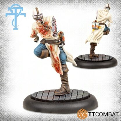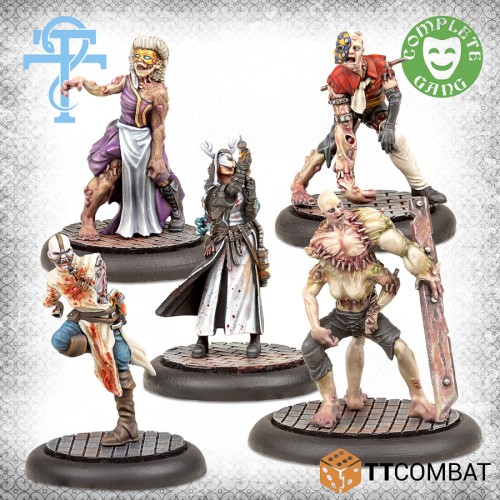 Ce gang complet de médecins est dirigé par un maître des études nécromantiques, utilisant son élixir de mort pour se transformer en une bête vampirique. Elle garde une paire de Husks – des formes réanimées faites de cadavres (pour la plupart entiers). Les pièces de rechange sont transformées en une monstruosité imposante. Enfin, un docteur en vénésection a été maudit pour vivre une vie éternelle – son cerveau est là, mais elle est un peu trop mortelle pour pratiquer à l’Ospedale avec tous ses membres.