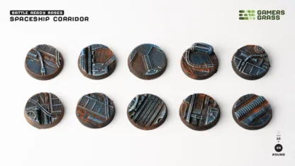 Ce blister contient 10 bases de combat rondes prêtes à l’emploi de 25 mm de large, sur le thème des couloirs de vaisseau spatial. Les fentes au bas sont compatibles avec des aimants d’un diamètre allant jusqu’à 6 mm et d’une épaisseur de 1 mm. Les aimants ne sont pas inclus. Toutes les bases de combat prêtes à l’emploi sont déjà peintes et finies à la main.