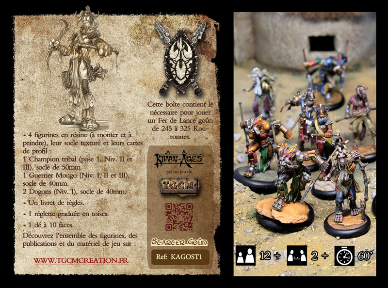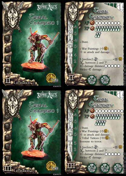 - 1 figurine du premier Champion Tribal, son socle de 50mm et ses 2 cartes de niveau.