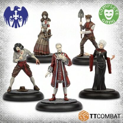 Cette boîte est un parfait starter pour un gang de Strigoi. Il contient un Noble Strigoi dévastateur, deux Thralls pour assurer la subsistance, un puissant Strigoi commun et le berserk Newborn Strigoi. Un gang Strigoi est une question de risque contre récompense – l’utilisation de leurs points de vie comme points de volonté leur offre un pouvoir énorme, mais les laisse ouverts à des représailles.