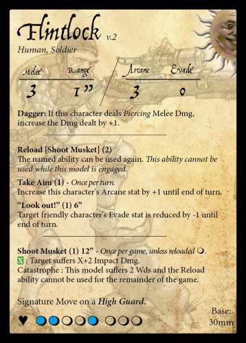 de statistiques Baron von Fancyhat 1 x miniature à silex et carte de statistiques