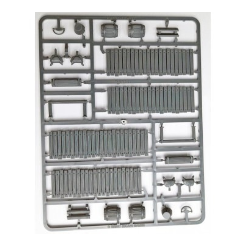 La boîte « Trottoirs » contient deux groupes de Trottoirs en plastique et divers accessoires pour le jeu. A assembler et à peindre.