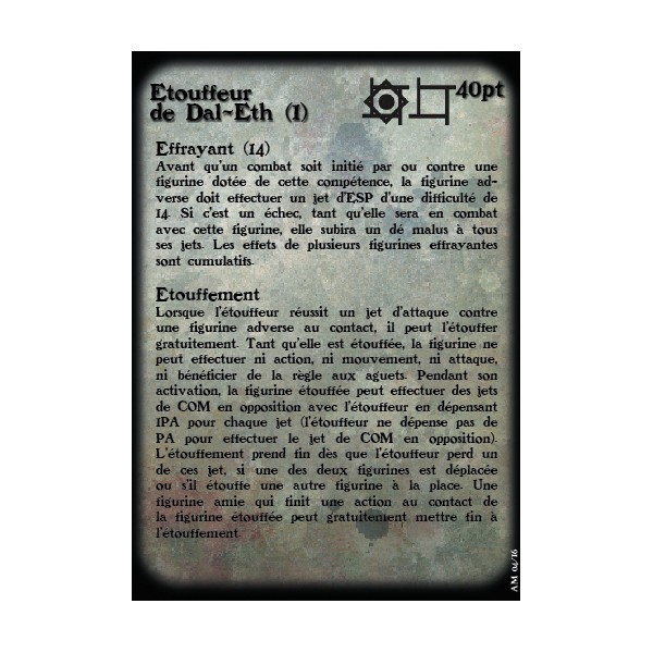Fournie avec un socle en résine texturé et sa carte de profil pour le jeu Alkemy.