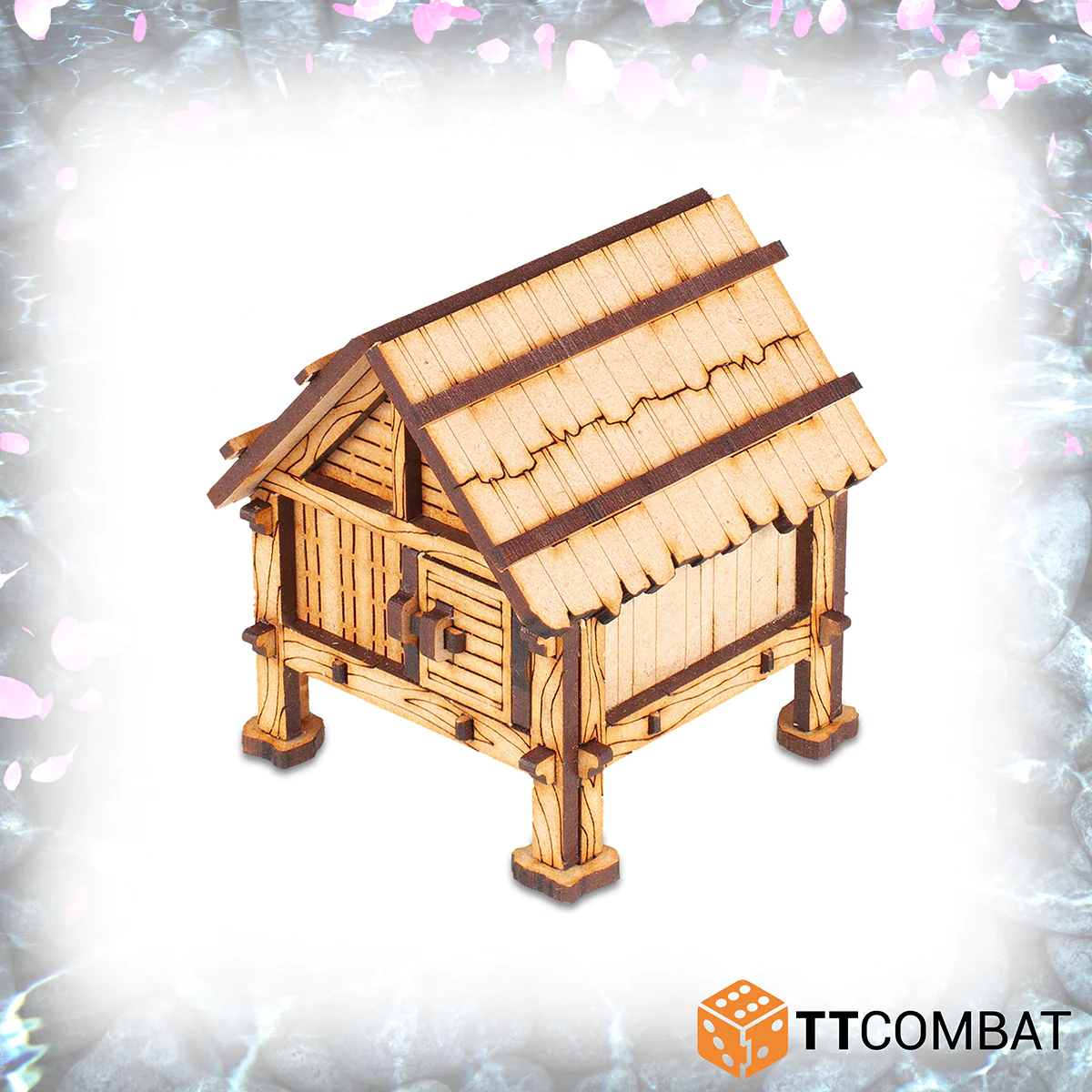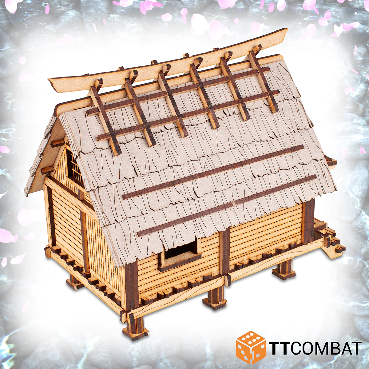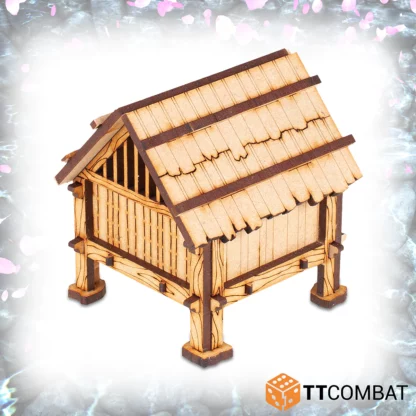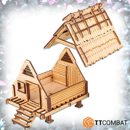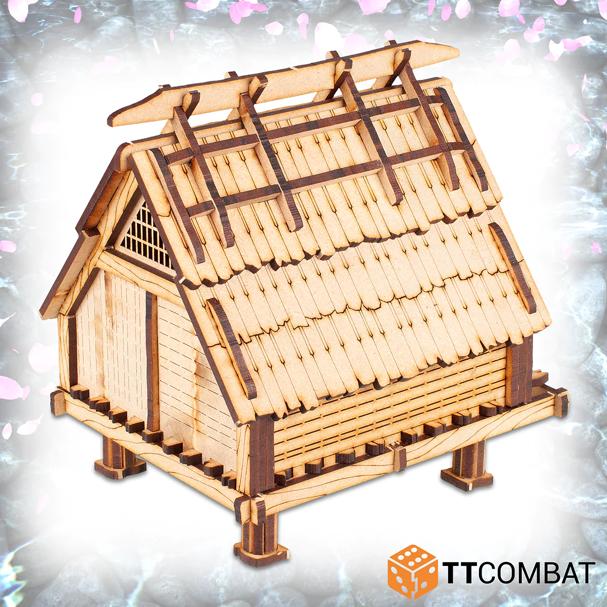 Le kit Inaka : Kōbetsu Farmstead est fabriqué à partir de MDF de 3 mm et de panneau gris de 1 mm. C’est un excellent kit de décor à utiliser dans les jeux d’escarmouche Fantasy, qui fonctionnera parfaitement avec les jeux et miniatures de 28 à 32 mm, et aura fière allure sur un plateau de jeu rural d’inspiration orientale.