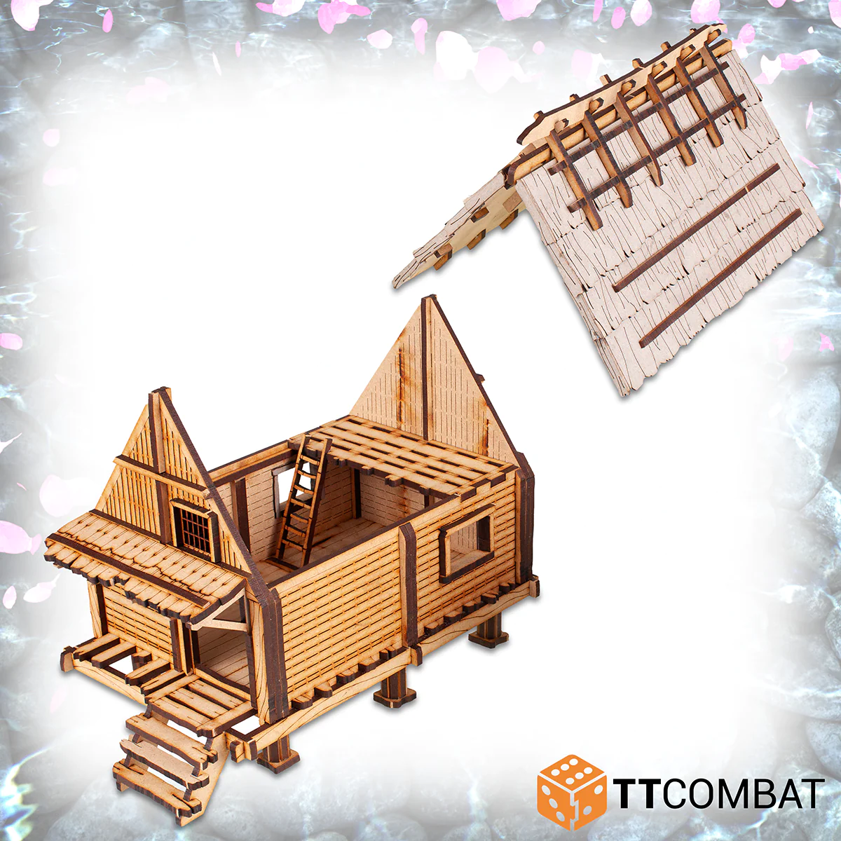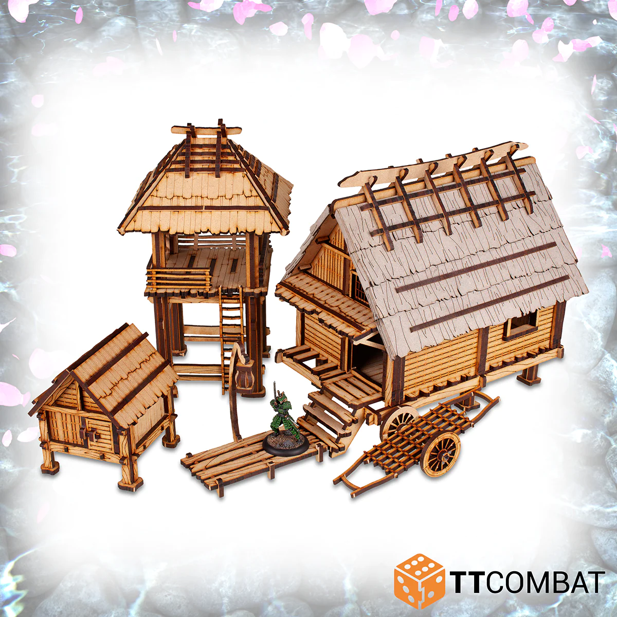 Le kit Inaka : Kōbetsu Farmstead, le cœur de la gamme Inaka. Composé de 3 bâtiments, d’une tour de guet, d’un magasin de riz, de charrettes et de passerelles. C’est un excellent point de départ pour une planche d’inspiration orientale. Doté de toits amovibles et d’intérieurs détaillés, la jouabilité est la caractéristique principale de ce kit.