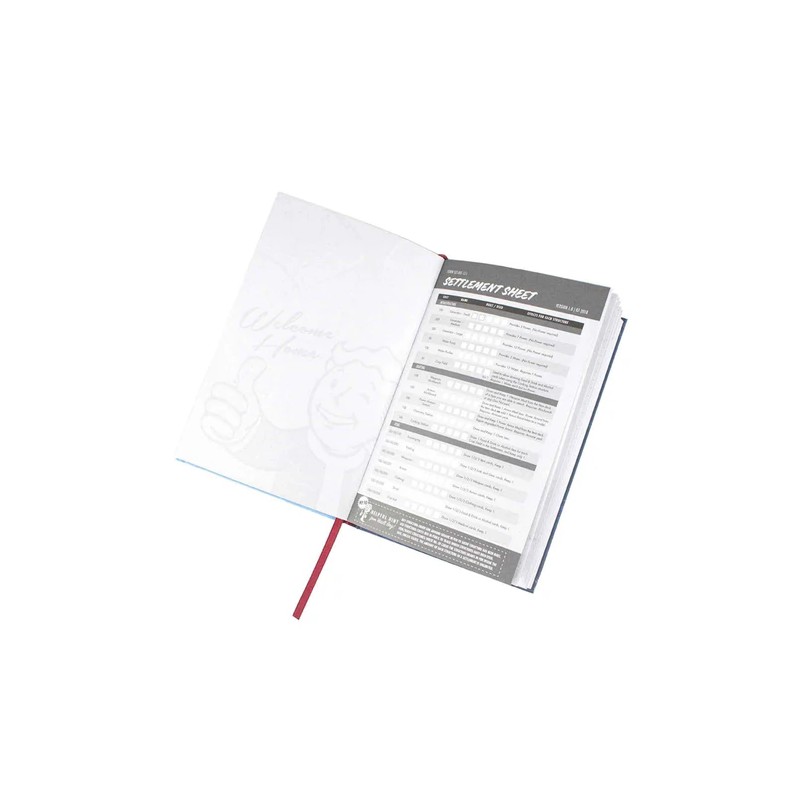 Il comprend des pages de règlement pour faciliter l’enregistrement des campagnes dans le jeu, ainsi que de nombreuses feuilles lignées, unies et quadrillées avec divers motifs Fallout pour garder une trace de toutes vos aventures dans les Terres désolées.