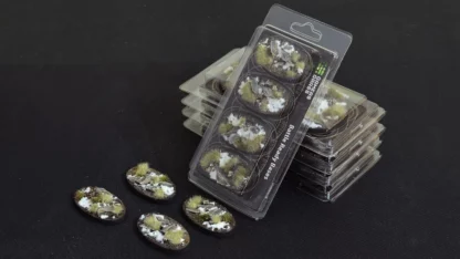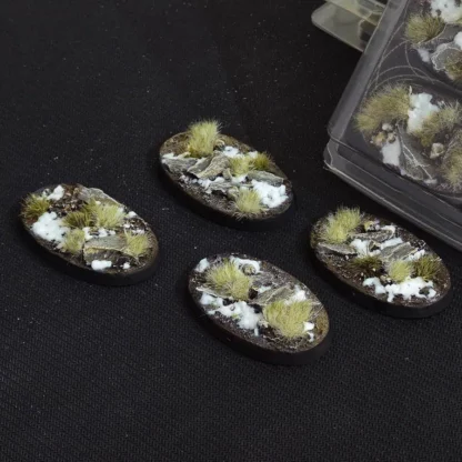 Ce pack contient 4 socles prêts pour la bataille de forme ovale, d’une largeur de 60 mm, dans un thème hivernal. Tous les socles prêts pour la bataille sont vendus déjà peints et finis à la main.