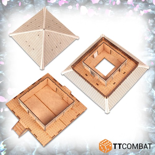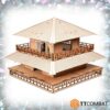 La pagode est fabriquée à partir de MDF de 3 mm et de Greyboard de 1 mm. C’est un excellent kit de décors à utiliser dans les jeux de guerre fantastiques ou modernes, et fonctionnera parfaitement avec les figurines de 28 à 32 mm.